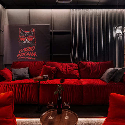 Первое, что поразило — это уютная атмосфера зала. Интерьер располагает к комфортному отдыху, а продуманная организация пространства позволяет и потанцевать, и попеть в караоке, и пообщаться с друзьями.